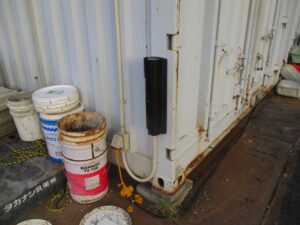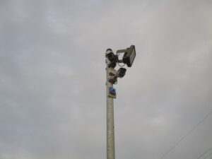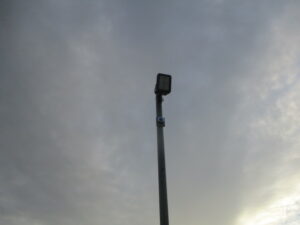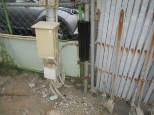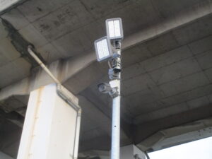 神奈川県横浜市の大型重機建築土木工事会社にて、運用いただいている防犯セキュリティ・カメラシステムの増設を含めた新調工事をしました。2日間での工事予定で、本日作業としてはカメラ4台増設分と赤外線センサー1組増設分、防犯表示灯2台の新規配管・配線と機器取付、既存LED投光器の交換工事を行いました。